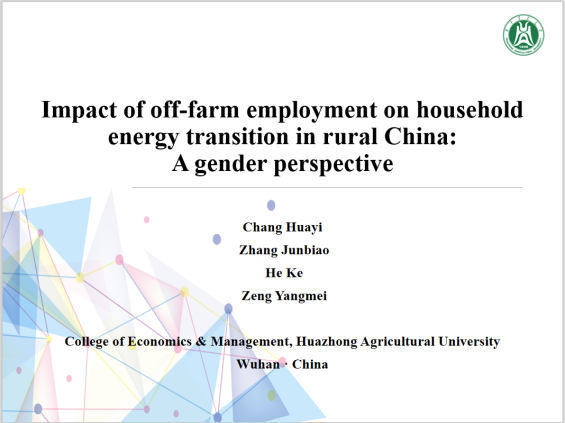畅华仪在Rural/Community Development分会场汇报了其工作论文“Impact of off-farm employment on household clean energy consumption in rural China: A gender perspective”。论文关注家庭非农就业对中国农村能源转型的影响,并为这一问题的探讨深化了性别差异视角的分析。