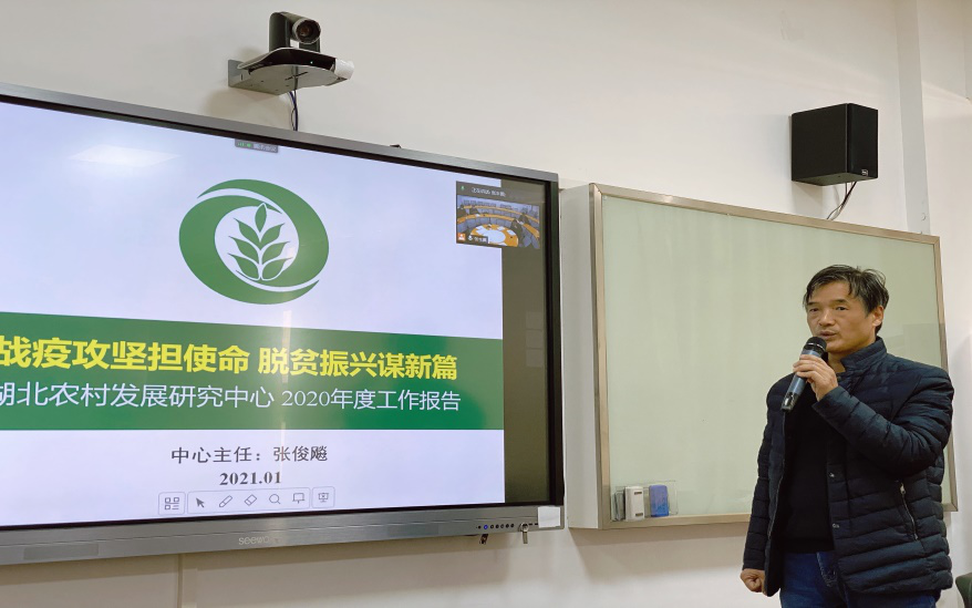 2021年1月16日下午,湖北农村发展研究中心2020年学术委员会会议在人文楼M505召开。本次会议采取线上线下相结合的方式,中心学术委员会成员和科研骨干、校人文社科处副处长王鹏、经济管理学院党委书记陈国顺等参加了本次会议。