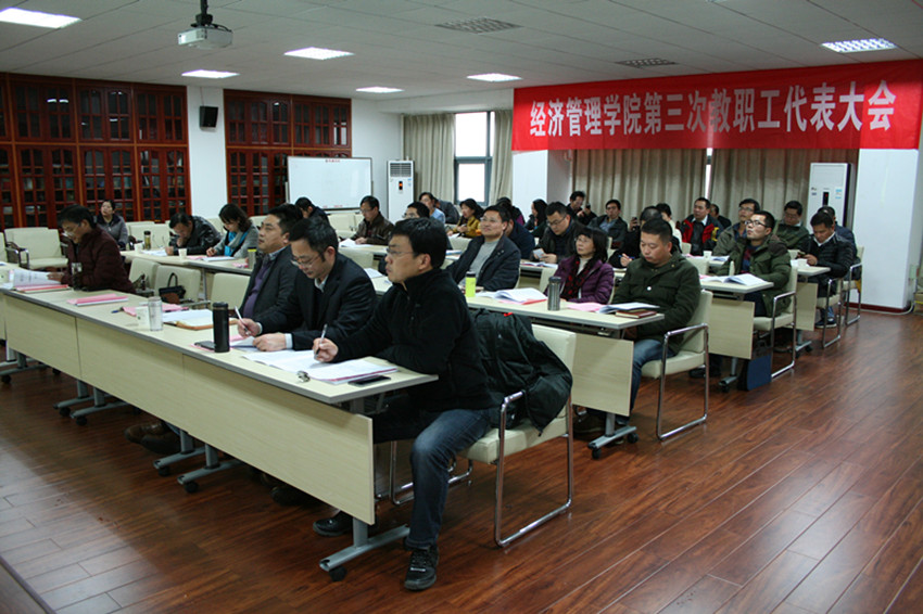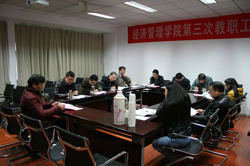 2016年11月22日下午,经济管理学院第三次教职工代表大会在人文楼M412会议室召开。学院党委副书记、大会执行主席镇志勇主持会议。